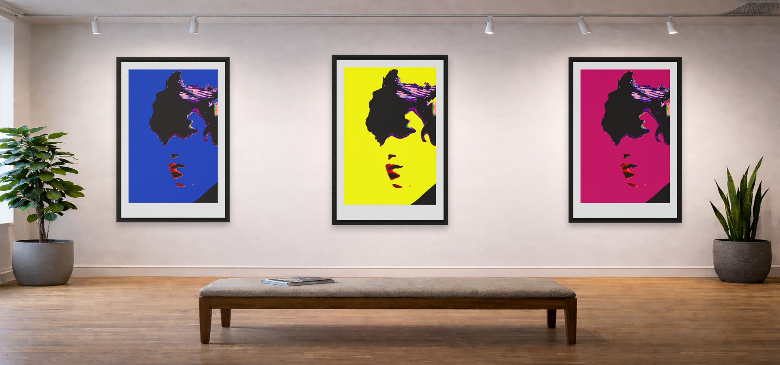 Each work exists as a unique pigment print, exploring color, distortion, and perception through contemporary abstract portraiture.